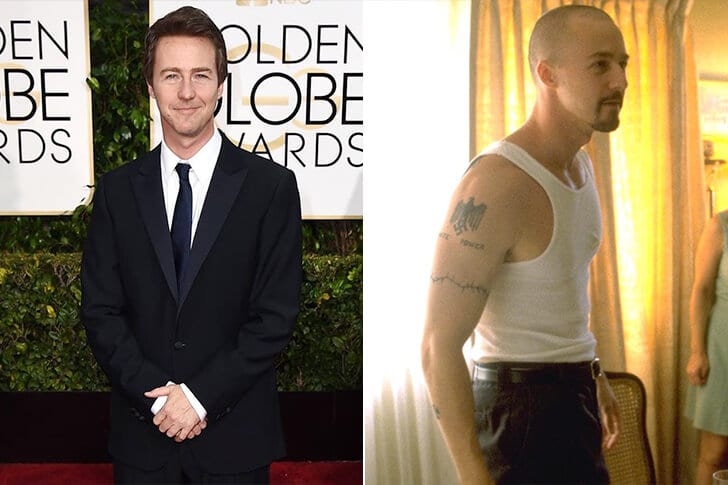 Edward Norton retratou o personagem notório de Derek na História Americana X, por meio do qual ele teve que ganhar peso muscular e desenvolver um abdômen, e o mais surpreendente é que ele conseguiu isso em apenas três meses. Treinamento físico e desenhos de tatuagem eram parte dos preparativos. Há rumores de que chamou a atenção do homem musculoso Arnold Schwarzenegger, que estava interessado em saber se os esteróides eram usados. Acontece que o ator não demorou para se transformar em Derek, mas a mudança não foi radical se parar para pensar no resultado final.